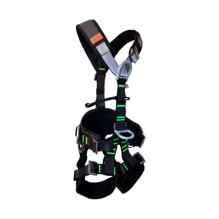 cinturão de segurança tipo para-quedista, desenvolvido para acesso por corda e atividades em altura que envolvem risco de queda, oferecendo segurança, conforto e resistência para uso profissional intensivo.
