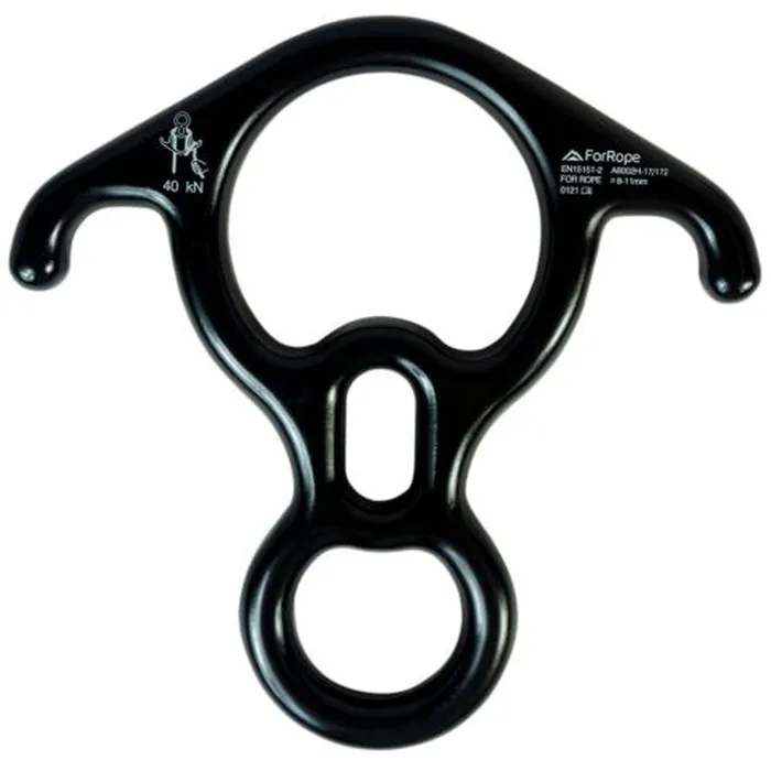 O Freio 8 com Orelhas For Rope é fabricado em alumínio de alta resistência, com acabamento anodizado na cor preta, sendo ideal para operações especiais, resgate técnico e atividades verticais que exigem alto desempenho e segurança.