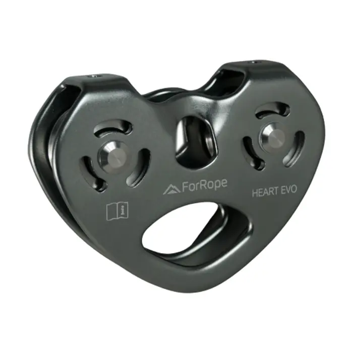 A HEART EVO For Rope é uma polia em linha projetada para unir alta performance, segurança e durabilidade em atividades verticais exigentes. Fabricada em alumínio de alta resistência, é compatível com cordas e cabos de aço de 7 a 13 mm, oferecendo grande versatilidade em diferentes tipos de operação.