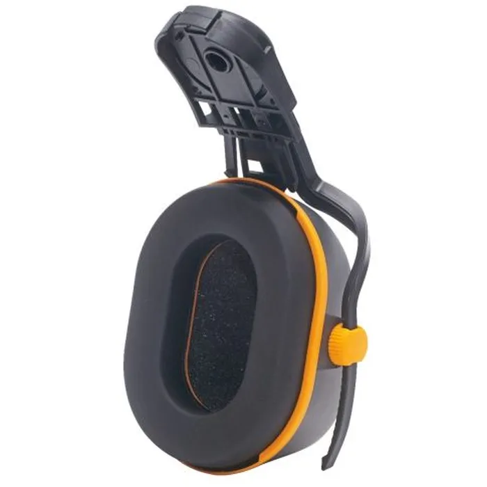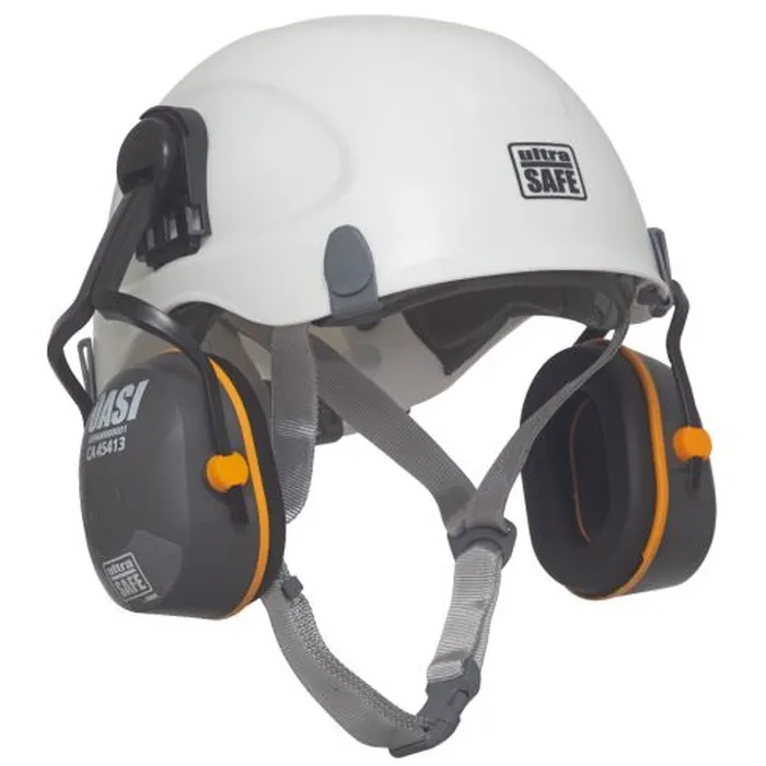 Protetor auditivo de segurança tipo concha, composto por duas conchas em plástico revestidas com almofadas de espuma em suas laterais, com preenchimento interno também em espuma. Possui haste de fixação móvel que mantém as conchas firmes e presas aos capacetes de segurança Ultra Safe Corazza Pro e Corazza Air.