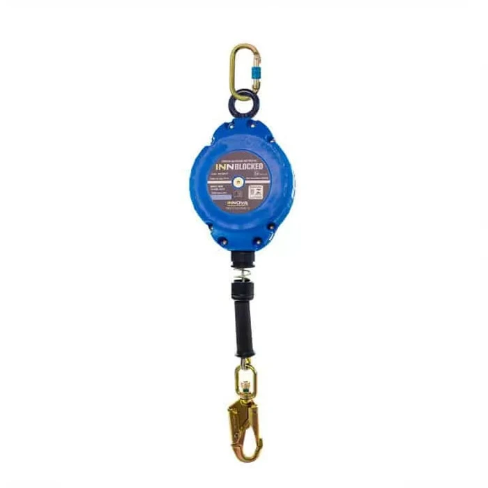 o trava-quedas retrátil inn blocked foi desenvolvido para oferecer máxima segurança e liberdade de movimentação em trabalhos em altura. equipado com linha retrátil em cabo de aço galvanizado de 4,5 mm, garante bloqueio automático em caso de queda, reduzindo imediatamente o deslocamento e o impacto.